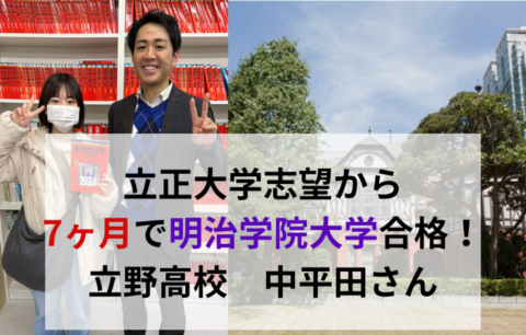 今回もまごうことなき下克上合格です!この生徒さんは市立橘高校という部活が忙しい高校で、さらに忙しい吹奏楽部で最後まで活動をしていました。そして、部活に全力で打ち込んだ結果、入塾時期も少し遅くなってしまいましたが、本人の猛烈な追い上げもあり、半年で明治大学に下克上合格を果たすことができました!最初は参考書の使い方や現代文の読み方から始まり、勉強の基礎的なことを身につけてもらいましたが、最後はMARCHレベルの問題を解けるまでになっていました。本当に合格おめでとうございます!